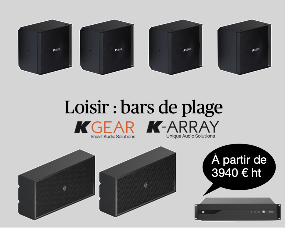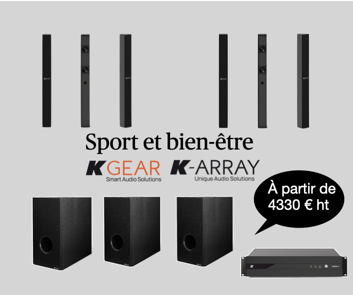 Le pack comprend 6 enceintes KGEAR GF22 accompagnées de 3 caissons de basses GS6 amplifier par un ampli K-ARRAY Kommander KA14I.